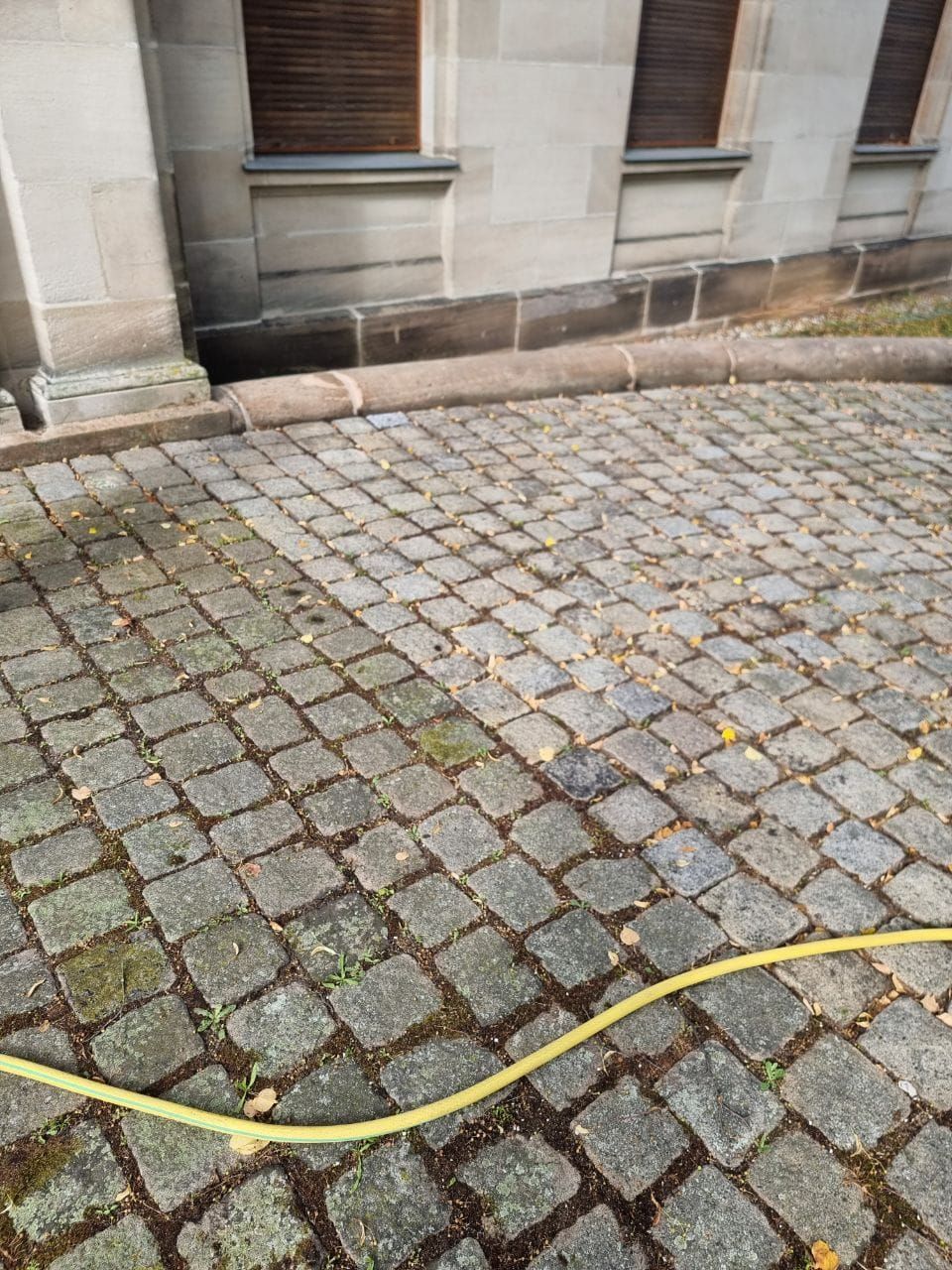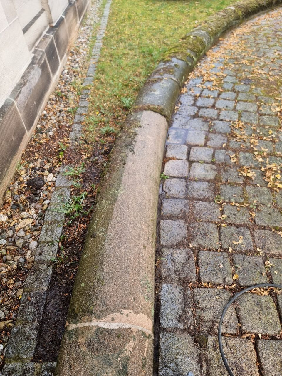 Der Zahn der Zeit nagt auch am schönen Naturstein, mit geeigneten chemischen Mitteln und Reinigungsmaschinen lässt sich hier einiges wieder aufhübschen !